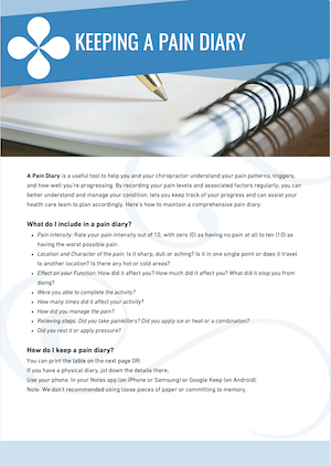 A pain diary can help you measure your pain, track your progress, and help determine contributors and patterns associated with your condition.
